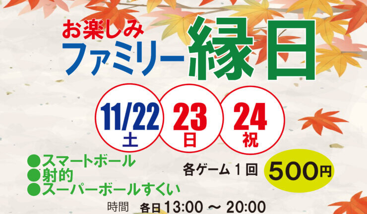 11月22日(土)~24日(月) 11月29日(土)~30日(日)は朝9時より繰り上げオープンいたします!!